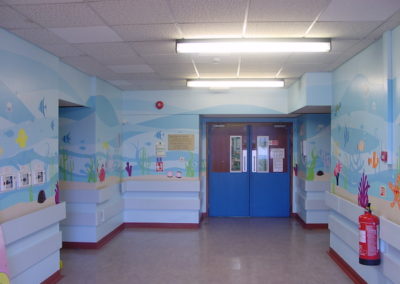 We have completed numerous projects in and around Warrington Hospital, and I’m particularly proud to showcase our work in the Children’s Accidents and Emergencies Ward. Specifically, I was tasked with enhancing the ward’s ambiance through decoration, focusing on a designated area.